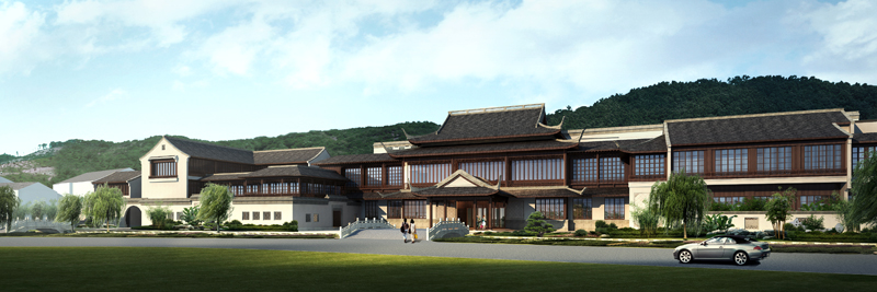 建成后的项目仍以白墙黑瓦、雕栏花窗为主题的建筑风格,配以曲径回转、小桥流水、花木扶疏的中式园林为景观,来体现古朴典雅的江南民居特色,与绍兴饭店的原建筑风格融为一体。