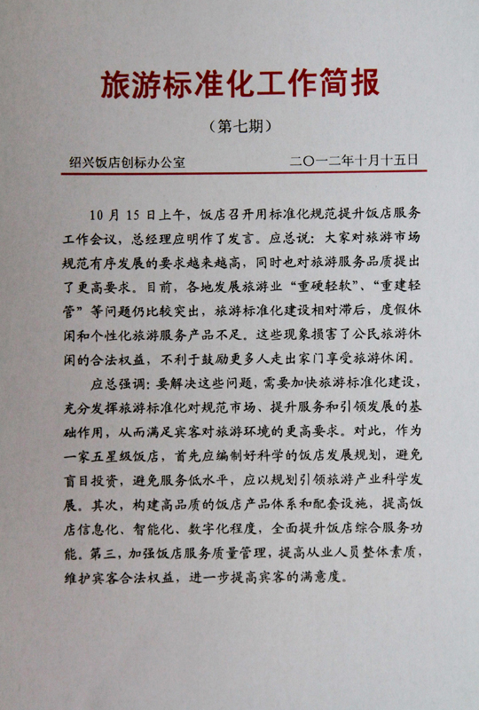 旅游标准化试点企业简报(7)